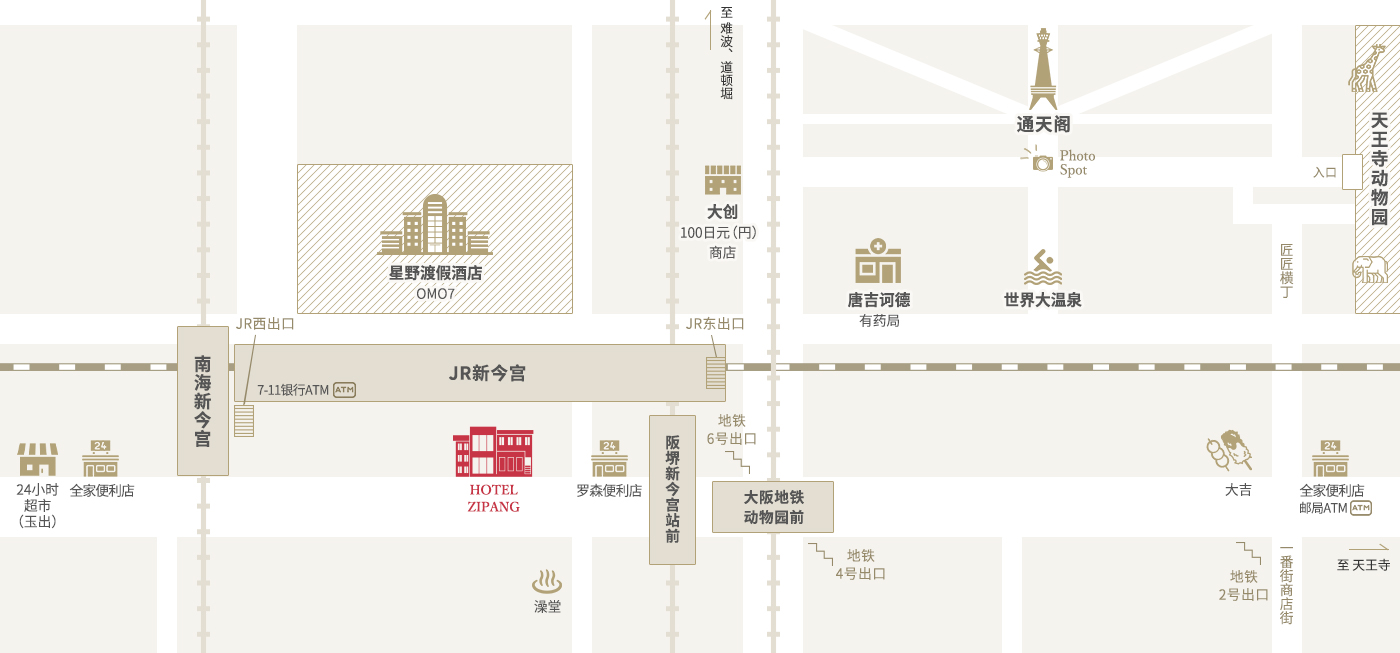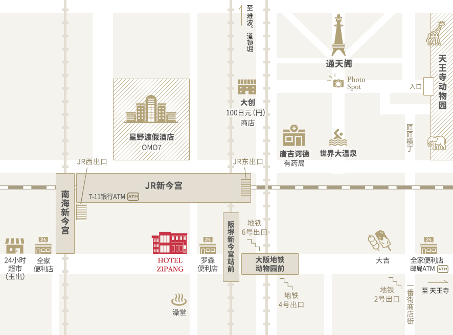 JR:新今宫站西出口出来步行1分钟